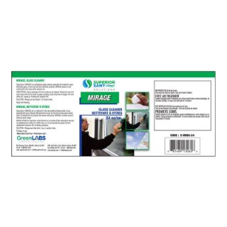 MIRAGE - Nettoyant à vitres prêt-à-l’usage, de qualité professionnelle, conçu spécialement pour nettoyer efficacement le verre, le chrome et toute autre surface polie. Contrairement à la plupart des autres nettoyants, Mirage ne laisse aucune pellicule après usage et dégage une odeur agréable de pomme. Homologué à l’Agence canadienne d'inspection des aliments. ACIA.