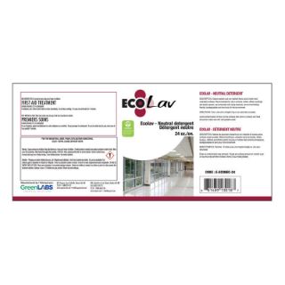 ECONEC détergent neutre Ecolav nettoie les planchers résilients et non résilients et toutes autres surfaces dures lavables. Le détergent neutre Ecolav est recommandé pour utilisation dans les écoles, hôtels, bureaux, édifices et endroits publics. Ce produit est certifié ÉcoLogo et homologué à l’Agence canadienne d’inspection des aliments. (UL 2759 - Norme 2011 de durabilité pour les nettoyants de surfaces dures)